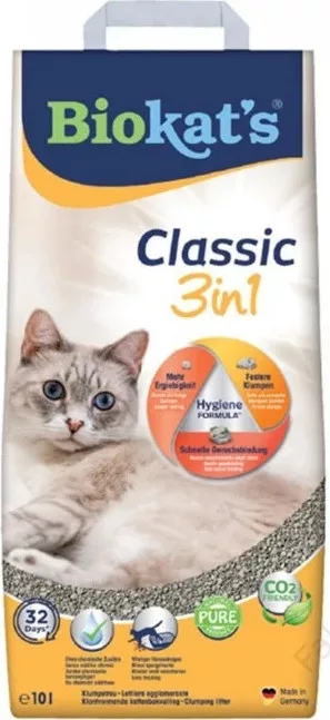 A Biokat's Classic 3in1 10L macskaalom megbízható, természetes és gazdaságos választás minden cicás otthon számára, ahol fontos a tiszta, higiénikus és könnyen kezelhető alomtálca.
