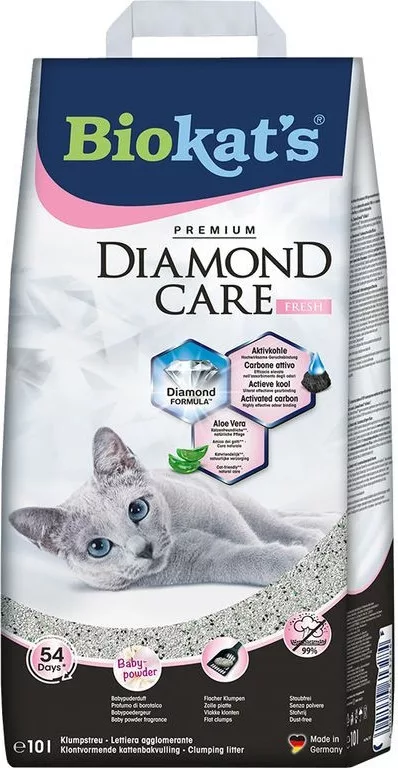 A Biokat's Diamond Care Fresh 8L kristály macskaalom ideális választás azok számára, akik nagy nedvszívó képességű, friss illatú, hatékony szagkontrollt biztosító macskaalmot keresnek a mindennapi higiénikus alomhasználathoz.