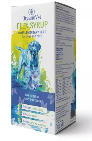 Az OrganoVet Flex 200 ml syrup egy folyékony ízületvédő étrend-kiegészítő kutyák és macskák számára. Komplex hatóanyag-tartalma támogatja az ízületi porcok, inak és kötőszövetek regenerációját, miközben hozzájárul az ízületek rugalmasságának és mozgékonyságának fenntartásához.