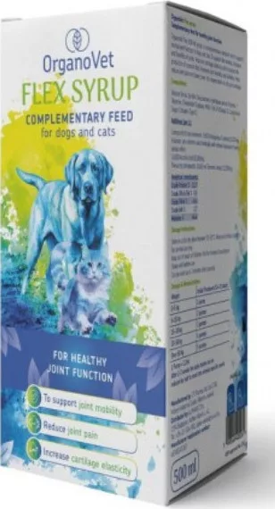 Az OrganoVet Flex 500 ml syrup egy folyékony ízületvédő étrend-kiegészítő kutyák és macskák számára, amely komplex hatóanyag-tartalmával támogatja az ízületi porcok, inak és kötőszövetek regenerációját. A nagyobb kiszerelés ideális hosszú távú alkalmazásra vagy több állat esetén.