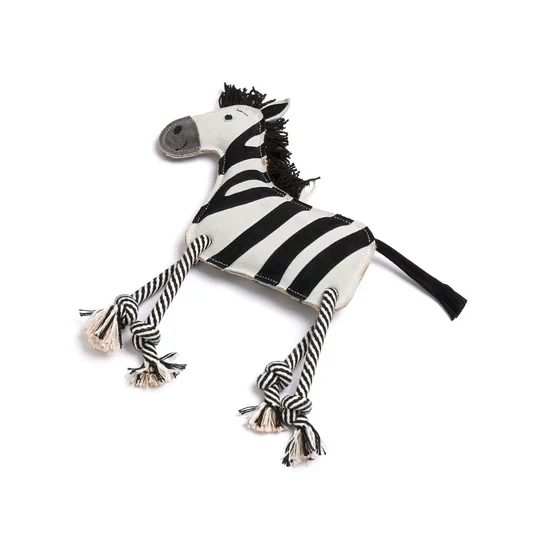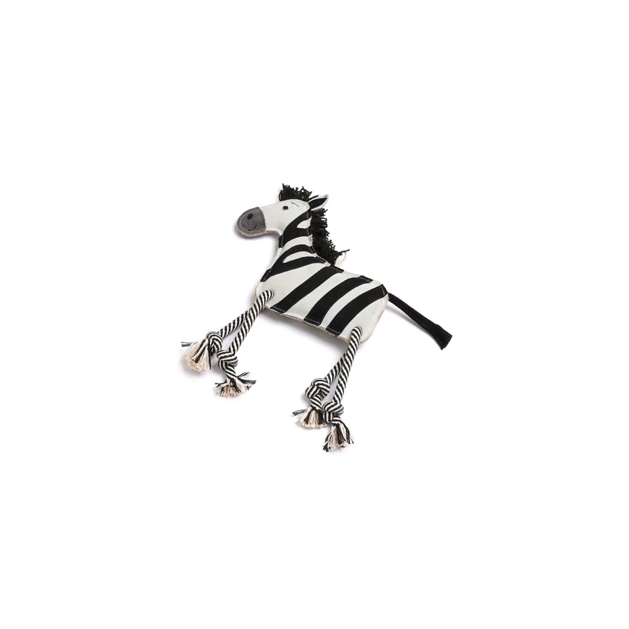 A Zambezi a zebra eco kutyajáték egy különleges, zebra formájú játék, amely természetes alapanyagokból készül, és kifejezetten apportozásra és aktív játékra lett tervezve. Szarvasbőr maradékokból és több réteg 100%-ban lebomló juta anyagból áll, amelyeket erős varrások tartanak össze.
